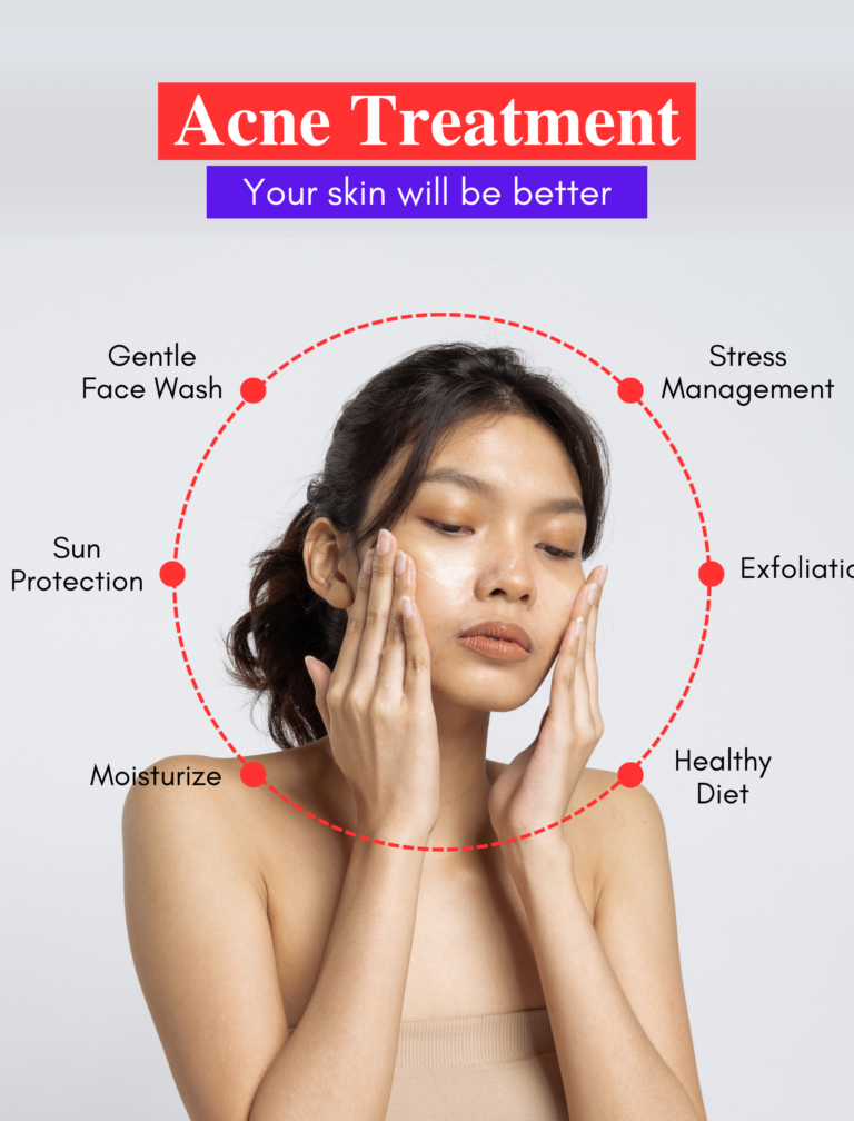 Acne is a skin condition influenced by factors such as excess sebum production, follicular hyperkeratinization, bacterial colonization, inflammation, hormonal changes, and genetic predisposition. Excessive sebum production, combined with abnormal keratinization, leads to the formation of clogged pores and comedones. Bacterial colonization within these clogged follicles triggers an immune response, resulting in inflammation and the formation of acne lesions. Hormonal fluctuations, particularly androgens, play a role in sebum production and follicular function. Salicylic Acid, Azelaic Acid and Lactic Acid aims at reducing sebum production, promoting proper follicular shedding, managing inflammation and restoring hydration to the skin.